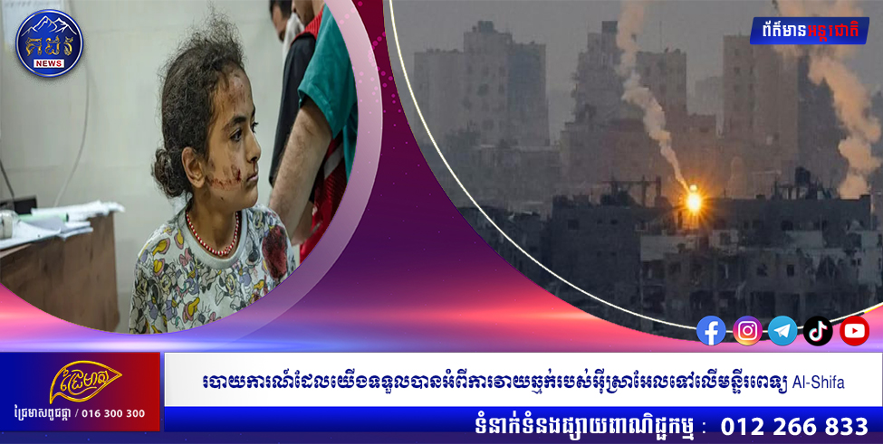 ការវាយឆ្មក់៖ នៅព្រឹកថ្ងៃពុធ ម៉ោងក្នុងស្រុក យោធាអ៊ីស្រាអែលបាននិយាយថា ខ្លួនកំពុងធ្វើប្រតិបត្តិការច្បាស់លាស់ និងកំណត់គោលដៅប្រឆាំងនឹងក្រុមហាម៉ាស់ នៅក្នុងតំបន់ជាក់លាក់មួយនៅក្នុងមន្ទីរពេទ្យ Shifa នៅហ្គាហ្សា។