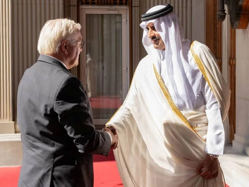 ចំណងជើងបដាកាលពីថ្ងៃទី 12 ខែតុលា បាននិយាយនៅលើទំព័រកាសែតអាល្លឺម៉ង់ Bild របស់អាល្លឺម៉ង់ថា ភាពស្រពិចស្រពិលនេះត្រូវបានបង្ហាញយ៉ាងពេញទំហឹង នៅពេលដែលលោក Sheikh Tamim បានចុះចតនៅទីក្រុងប៊ែរឡាំងកាលពីខែមុនថា “ដំណើរទស្សនកិច្ចរបស់រដ្ឋដោយឈាម emir” ។