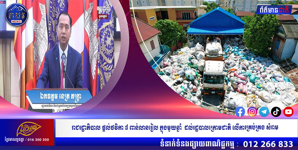 រាជរដ្ឋាភិបាល ផ្ដល់ថវិកា ៨ ពាន់លានរៀល ក្នុងមួយឆ្នាំដល់រដ្ឋបាលក្រោមជាតិ លើការគ្រប់គ្រង សំរាម