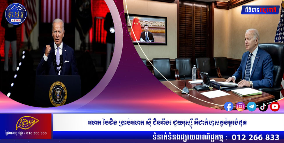 (វ៉ាស៊ីនតោន)៖ ប្រធានាធិបតីអាមេរិក លោក ចូ បៃដិន បាននិយាយថាលោកផ្ទាល់ធ្លាប់បានប្រាប់ប្រធានាធិបតីចិន លោក ស៊ី ជិនពីង ថាវានឹងក្លាយជាកំហុសដ៏ធ្ងន់ធ្ងរ បំផុតមួយ ប្រសិនបើចិនជួយរុស្ស៉ី ដោយបំពានលើវិធានការដាក់ទណ្ឌកម្មរបស់លោកខាងលិច ជុំវិញសង្រ្គាមនៅអ៊ុយក្រែន។ នេះបើតាមការដកស្រង់ចេញផ្សាយពី សារព័ត៌មាន Al Jazeera នៅថ្ងៃអង្គារ ទី២០ ខែកញ្ញា ឆ្នាំ២០២២។