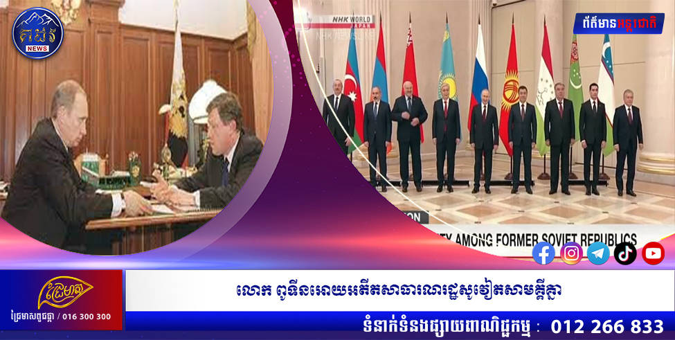 ម៉ូស្គូ៖ ប្រធានាធិបតីរុស្ស៊ី លោក វ្ល៉ាឌីមៀ ពូទីន បានប្រើកិច្ចប្រជុំកំពូលក្រៅផ្លូវការនៃរដ្ឋឯករាជ្យ Commonwealth (CIS) ដែលរុស្ស៊ីធ្វើជាម្ចាស់ផ្ទះ អំពាវនាវឲ្យមានសាមគ្គីភាព ក្នុងចំណោមប្រទេសអតីតសាធារណរដ្ឋសូវៀត។