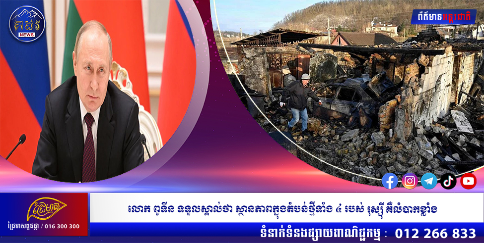 លោក ពូទីន ទទួលស្គាល់ថា ស្ថានភាពក្នុងតំបន់ថ្មីទាំង ៤ របស់ រុស្ស៊ី គឺលំបាកខ្លាំង