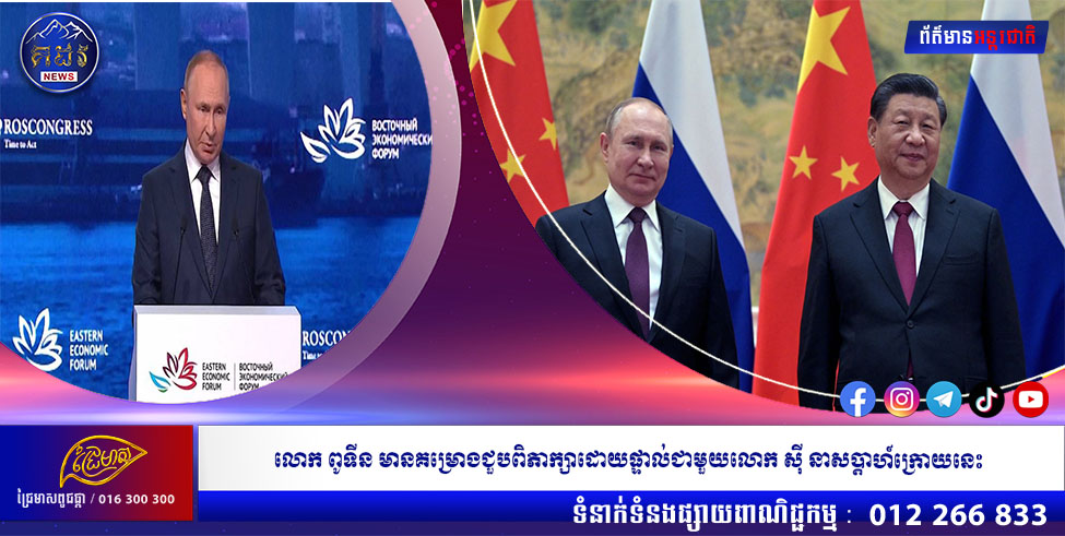 ម៉ូស្គូ៖ ប្រធានាធិបតីរុស្ស៊ី លោក វ្ល៉ាឌីមៀ ពូទីន បានបញ្ជាក់ពីផែនការជួបជាមួយសមភាគីចិន លោក ស៊ី ជីនពីង នៅប្រទេសអ៊ូសបេគីស្ថាន នាសប្តាហ៍ក្រោយនេះ។