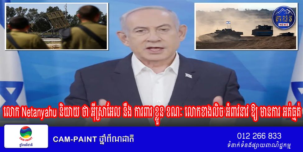 យេរូសាឡឹម/គែរ៖ នាយករដ្ឋមន្ត្រីអ៊ីស្រាអែល លោក Benjamin Netanyahu បាននិយាយកាលពីថ្ងៃពុធថា អ៊ីស្រាអែលនឹងធ្វើការសម្រេចចិត្តដោយខ្លួនឯងអំពីវិធីការពារខ្លួន ខណៈដែលបណ្តាប្រទេសលោកខាងលិចបានអង្វរឱ្យមានការអត់ធ្មត់ក្នុងការឆ្លើយតបទៅនឹងការវាយប្រហារដ៏ខ្លាំងក្លាពីប្រទេសអ៊ីរ៉ង់។ សហរដ្ឋអាមេរិកសហភាពអឺរ៉ុបនិងក្រុមប្រទេសឧស្សាហកម្មG7ទាំងអស់បានប្រកាសពីផែនការពិចារណាលើការដាក់ទណ្ឌកម្មកាន់តែតឹងរ៉ឹងលើអ៊ីរ៉ង់ដែលត្រូវបានគេមើលឃើញថាមានគោលបំណងបំភាន់អ៊ីស្រាអែលនិងបញ្ចុះបញ្ចូលឱ្យវារក្សាការសងសឹករបស់ខ្លួនចំពោះការវាយប្រហារដោយផ្ទាល់ពីអ៊ីរ៉ង់ជាលើកដំបូងបន្ទាប់ពីការប្រឈមមុខដាក់គ្នាជាច្រើនទសវត្សរ៍ដោយប្រូកស៊ី។