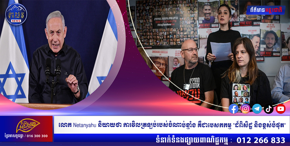 នាយករដ្ឋមន្ត្រីអ៊ីស្រាអែលលោកBenjaminNetanyahuបានហៅការវិលត្រឡប់របស់អ៊ីស្រាអែលដែលត្រូវបានចាប់ធ្វើជាចំណាប់ខ្មាំងដោយក្រុមហាម៉ាសកាលពីថ្ងៃទី7ខែតុលាថាជា”បេសកកម្មដ៏ពិសិដ្ឋនិងខ្ពស់បំផុត”នៅក្នុងសេចក្តីថ្លែងការណ៍មួយកាលពីថ្ងៃអង្គារខណៈដែលគាត់ប្រឈមមុខនឹងកំហឹងកាន់តែខ្លាំងឡើងពីសមាជិកគ្រួសារចំពោះល្បឿនយឺតនៃវឌ្ឍនភាពក្នុងការធានាការដោះលែងពួកគេ។