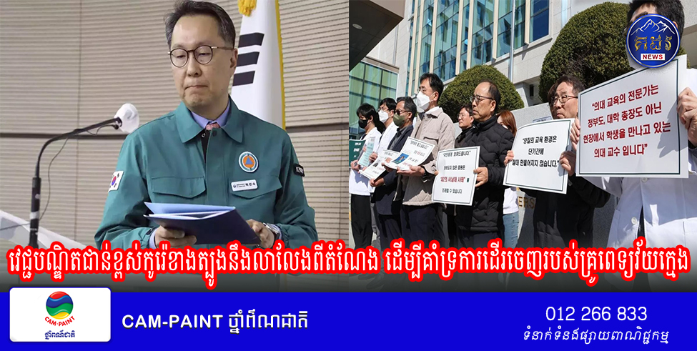 វេជ្ជបណ្ឌិតជាន់ខ្ពស់កូរ៉េខាងត្បូងមួយក្រុមបាននិយាយកាលពីថ្ងៃទី 16 ខែមីនាថា ពួកគេនឹងលាលែងពីតំណែងចាប់ពីថ្ងៃទី25 ខែមីនាដើម្បីគាំទ្រដល់គ្រូពេទ្យវ័យក្មេង នៅក្នុងកូដកម្មរយៈពេលជិតមួយខែ ជុំវិញកំណែទម្រង់ការបណ្តុះបណ្តាលរបស់រដ្ឋាភិបាលដែលបានធ្វើឱ្យមន្ទីរពេទ្យ ធ្លាក់ចូលទៅក្នុងភាពវឹកវរ។ គ្រូពេទ្យកម្មសិក្សារាប់ពាន់នាក់បានឈប់ធ្វើការ កាលពីថ្ងៃទី20 ខែកុម្ភៈដើម្បីតវ៉ានឹងកំណែទម្រង់របស់រដ្ឋាភិបាលក្នុងគោលបំណងបន្ធូរបន្ថយការខ្វះខាតវេជ្ជបណ្ឌិត ដោយការបង្កើនចំនួននិស្សិតពេទ្យដែលក្រុមគ្រូពេទ្យអះអាងថា ជាចំបើងចុងក្រោយ សម្រាប់អ្នកជំនាញដែលធ្វើការលើសទម្ងន់ និងទទួលបានប្រាក់ខែទាប។