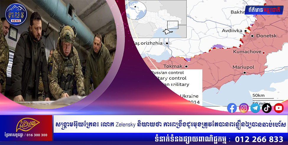 ប្រធានាធិបតីអ៊ុយក្រែនលោក Volodymyr Zelensky បាននិយាយថា ការការពារត្រូវតែត្រូវបានពង្រឹងយ៉ាងឆាប់រហ័សនៅទូទាំងជួរមុខ បន្ទាប់ពីបានជួបជាមួយមេបញ្ជាការនៅក្នុងចំណុចសម្ពាធសំខាន់ៗមួយចំនួននៅភាគខាងត្បូង និងខាងកើត។