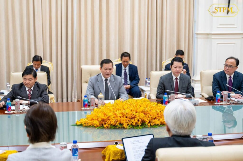 នាព្រឹកថ្ងៃទី០១ ខែកុម្ភៈ ឆ្នាំ២០២៤ សម្តេចមហាបវរធិបតី ហ៊ុន ម៉ាណែត នាយករដ្ឋមន្រ្តី នៃព្រះរាជាណាចក្រកម្ពុជា បានអនុញ្ញាតឱ្យ លោក Yoshihisa Suzuki ប្រធានគណៈកម្មាធិការកិច្ចសហប្រតិបត្តិការធុរកិច្ចមេគង្គ-ជប៉ុន នៃសភាពាណិជ្ជកម្ម និងឧស្សាហកម្មជប៉ុន ចូលជួបសម្តែងការគួរសម និងពិភាក្សាការងារ នៅវិមានសន្តិភាព។