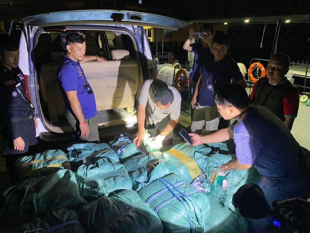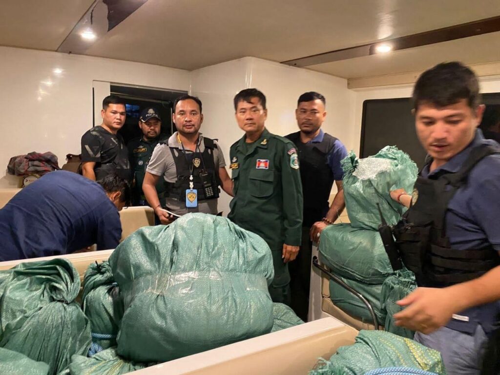 (ភ្នំពេញ)៖ ជនជាតិចិន៥នាក់ ត្រូវបានកងកម្លាំងនគរបាលការពារព្រំដែនទឹក សហការជាមួយកម្លាំងមន្ទីរប្រឆាំងគ្រឿងញៀន នៃអគ្គស្នងការដ្ឋាននគរបាលជាតិ ចាប់ខ្លួន ជាមួយនឹងការដកហូតគ្រឿងញៀនប្រមាណ ៩២៤គីឡូក្រាម។