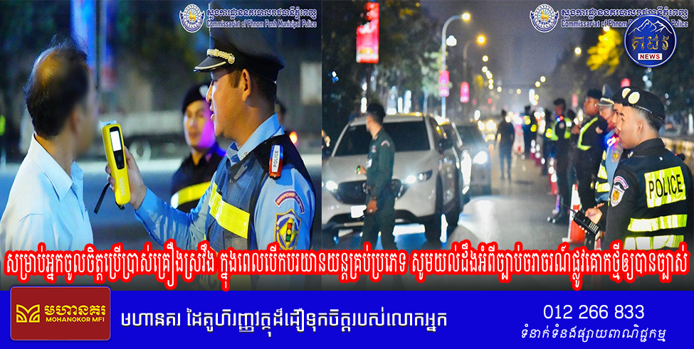 សម្រាប់អ្នកចូលចិត្តប្រើប្រាស់គ្រឿងស្រវឹង ក្នុងពេលបើកបរយានយន្តគ្រប់ប្រភេទ សូមយល់ដឹងអំពីច្បាប់ចរាចរណ៍ផ្លូវគោកថ្មីឲ្យបានច្បាស់
