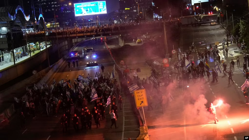 គួរបញ្ជាក់ថា កាលពីថ្ងៃសៅរ៍ ក្រុមបាតុកររាប់ម៉ឺននាក់បានដើរតាមផ្លូវដូចដែលពួកគេមានរៀងរាល់សប្តាហ៍ចាប់តាំងពីដើមឆ្នាំមក — ក្នុងករណីជាច្រើនដែលនាំឱ្យផ្នែកខ្លះនៃទីក្រុងហ្សេរុយសាឡឹម និងទីក្រុង Tel Aviv ឈប់ឈរ។ វាក៏បានលើកឡើងពីការវាយប្រហាររបស់សម្ព័ន្ធមិត្តជិតស្និទ្ធបំផុតរបស់អ៊ីស្រាអែល ដោយសាកល្បងទំនាក់ទំនងរបស់ខ្លួនជាមួយសហរដ្ឋអាមេរិក។
