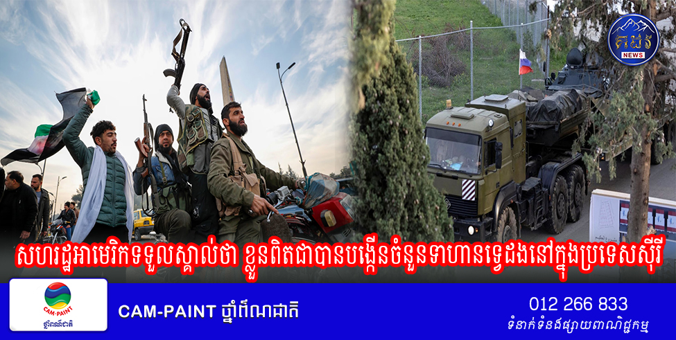 មន្ទីរបញ្ចកោណបានប្រកាសថា អាមេរិកបច្ចុប្បន្នមានទាហានប្រមាណ ២,០០០នាក់ នៅក្នុងប្រទេសស៊ីរី ច្រើនជាងទ្វេដងនៃចំនួនដែលបានបង្ហាញពីមុនចំនួន ៩០០នាក់ នេះបើតាមអ្នកនាំពាក្យក្រសួងការពារជាតិបាននិយាយនៅក្នុងសន្និសីទសារព័ត៌មានមួយកាលពីថ្ងៃព្រហស្បតិ៍។ ឧត្តមសេនីយ Patrick Ryder លេខាធិការព័ត៌មានរបស់មន្ទីរបញ្ចកោណបាននិយាយថា “មានការពិចារណាផ្នែកការទូត និងសន្តិសុខប្រតិបត្តិការជាញឹកញាប់ជាមួយការដាក់ពង្រាយរបស់យើង និងចំនួនមួយចំនួននៃចំនួនទាំងនោះ ហើយជាការពិតនៅទីនេះ” ឧត្តមសេនីយ៍ឯក Patrick Ryder លេខាធិការព័ត៌មានរបស់មន្ទីរបញ្ចកោណ ដែលបាននិយាយថា កងទ័ពចំនួន 2,000 នាក់គឺទាំងអស់នៅក្នុងប្រទេសស៊ីរី។ ដើម្បីប្រយុទ្ធប្រឆាំងនឹង ISIS ។