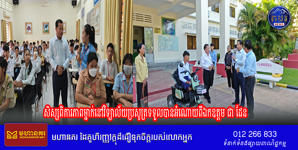 កង់អាគុយសម្រាប់ជនពិការ១គ្រឿងតម្លៃ៥៥០ដុល្លាសហរដ្ឋអាមេរិក,សៀវភៅសិក្សា,ថវិកា១០មុឺនរៀល និងផ្គត់ផ្គង់ប្រចាំខែសម្រាប់ប្អូនចាយវាយគឺក្នុងមួយខែចំនួន ១៥មុឺនរៀលបន្ថែមទៀតរយៈពេលមួយឆ្នាំ ។នៅក្នុងឱកាសនោះដែរម្ដាយរបស់ប្អូនប្រុសទទួលបានថវិកាពីរឯកឧត្តមចំនួន២០មុឺនរៀលផងដែរ។