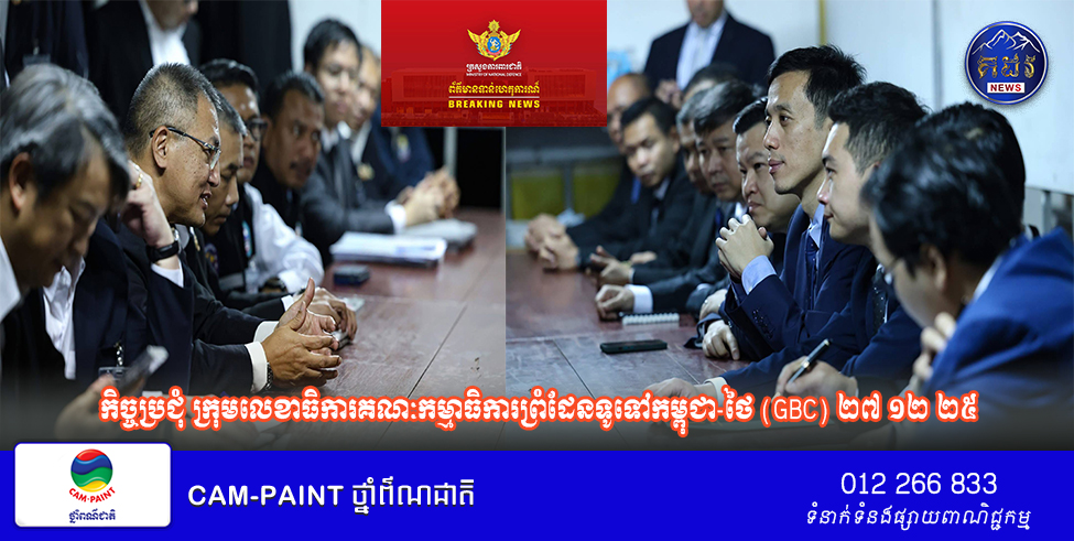 នៅវេលាម៉ោង ២២:៥០នាទីល្ងាចថ្ងៃទី២៦ ខែធ្នូ ឆ្នាំ២០២៥នេះ សហប្រធានកិច្ចប្រជុំ ក្រុមលេខាធិការគណៈកម្មាធិការព្រំដែនទូទៅកម្ពុជា-ថៃ (GBC) ដែលដឹកនាំដោយ ឧត្តមសេនីយ៍ទោ ញ៉ែម បូរ៉ាដែន ប្រធានក្រុមលេខាធិការ (GBC) កម្ពុជា និង នាយឧត្តមសេនីយ៍ ណាត់ថាផុង ប្រាវកែវ ប្រធានក្រុមលេខាធិការ (GBC ) ថៃ សម្រេចឯកភាពគ្នាលើខ្លឹមសារ នៃសេចក្តីព្រាង សេចក្តីប្រកាសរួមកិច្ចប្រជុំពិសេសលើកទី៣ នៃគណៈកម្មាធិការព្រំដែនទូទៅកម្ពុជា-ថៃ (GBC) ដែលមានការចូលរួមសង្កេតការណ៍ពីក្រុមអ្នកសង្កេតការណ៍អាស៊ាន (AOT) របស់កម្ពុជា និងថៃ។