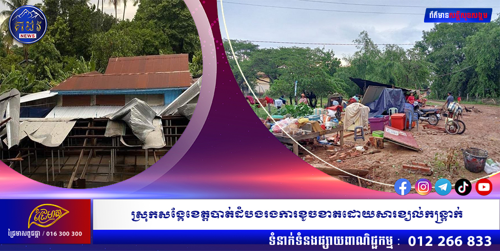 ឃុំចំនួន៨ ក្នុងទឹកដីស្រុកសង្កែ ខេត្តបាត់ដំបងរងការវាយប្រហារពីខ្យល់កន្ត្រាក់ ទាំងលំនៅឋាន សាលារៀន បណ្តាលឱ្យខូចខាតអស់ជាច្រើនខ្នង។
