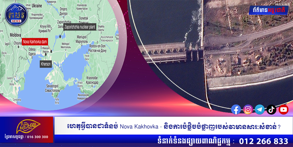ទំនប់វារីអគ្គីសនីដ៏សំខាន់មួយនៅភាគខាងត្បូងអ៊ុយក្រែនដែលកាន់កាប់ដោយរុស្ស៊ីបានដួលរលំកាលពីព្រឹកថ្ងៃអង្គារ ដោយជំរុញឱ្យមានការជម្លៀសប្រជាជន និងការភ័យខ្លាចចំពោះការបំផ្លិចបំផ្លាញទ្រង់ទ្រាយធំ ខណៈដែលអ៊ុយក្រែនបានចោទប្រកាន់កងកម្លាំងរបស់ទីក្រុងមូស្គូថាបានប្រព្រឹត្តទង្វើនៃ “អេកូឡូស៊ី” ។