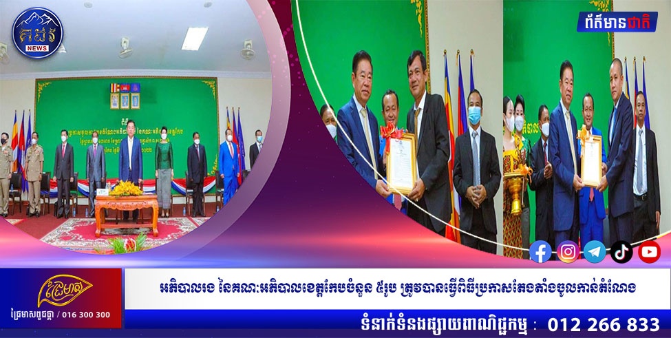 អភិបាលរង នៃគណៈអភិបាលខេត្តកែបចំនួន ៥រូប ត្រូវបានធ្វើពិធីប្រកាសតែងតាំងចូលកាន់តំណែង