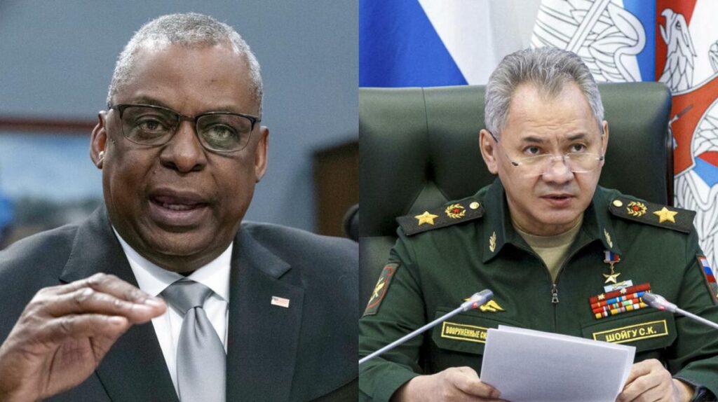 (វ៉ាស៊ីនតោន)៖ រដ្ឋមន្រ្តីការពារជាតិសហរដ្ឋអាមេរិក លោក ឡយដ៍ អូស្ទីន (Lloyd Austin) បានជួបសន្ទនាតាមទូរស័ព្ទជាមួយរដ្ឋមន្រ្ទីការពារជាតិរុស្ស៊ី លោក សឺហ្គៃ ស៊ុយហ្គូ (Sergei Shoigu) ក្នុងជំនួបដ៏កម្រមួយស្តីពីបញ្ហាសង្រ្គាមនៅអ៊ុយក្រែន។ នេះបើយោងតាមការចុះផ្សាយដោយទីភ្នាក់ងារសារព័ត៌មាន AFP នៅថ្ងៃសៅរ៍ ទី២២ ខែតុលា ឆ្នាំ២០២២។
