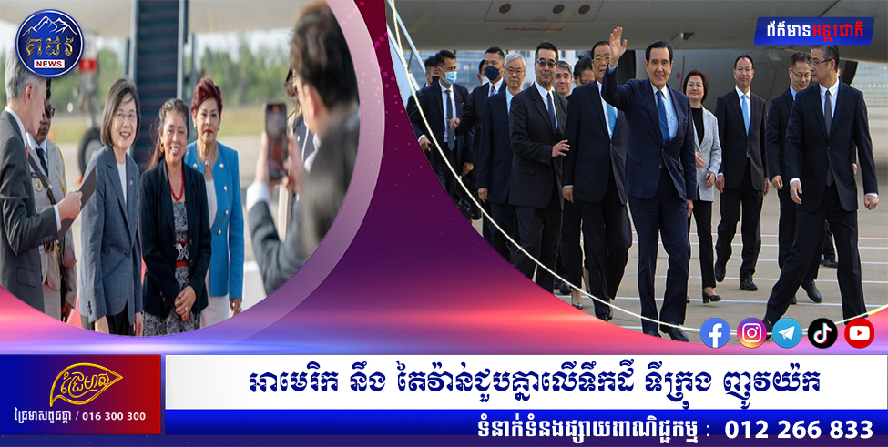 ប្រធានសភាអាមេរិកលោក Kevin McCarthy នឹងជួបប្រជុំទេ្វភាគីជាមួយប្រធានាធិបតីតៃវ៉ាន់លោកស្រី Tsai Ing-wen ក្នុងរដ្ឋ California នៅថ្ងៃពុធ ស្របពេលដែលលោក Donald Trump ក៏កំពុងប្រឈមមុខនឹងការឡើងតុលាការ ក្រោមបទចោទប្រកាន់ព្រហ្មទណ្ឌ រឿងផ្តល់ប្រាក់សូកប៉ាន់បំបិទមាត់ទៅឲ្យតារាអាសអាភាស Stormy Daniels ។