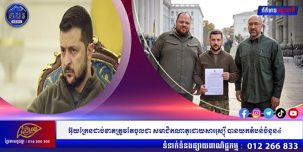ប្រធានាធិបតីVolodymyrZelenskyបាននិយាយថាក្រុងគៀវបានដាក់ពាក្យជាផ្លូវការដើម្បីចូលរួមជាមួយសម្ព័ន្ធមិត្តយោធាណាតូបន្ទាប់ពីរុស្ស៊ីបានបញ្ចូលតំបន់ចំនួន៤នៅក្នុងអ៊ុយក្រែន។លោកប្រធានាធិបតី VolodymyrZelenskyបាននិយាយនៅក្នុងវីដេអូមួយដែលបានចេញផ្សាយកាលពីថ្ងៃទី ៣០ខែកញ្ញាថា”យើងកំពុងចាត់វិធានការយ៉ាងម៉ឺងម៉ាត់ជាមួយនឹងការចុះហត្ថលេខាលើពាក្យសុំចូលជាសមាជិកណាតូយ៉ាងឆាប់រហ័ស”។វីដេអូបង្ហាញពីប្រធានាធិបតី Zelensky ចុះហត្ថលេខាលើឯកសារមួយនៅចំពោះមុខនាយករដ្ឋមន្ត្រីនិងប្រធានសភាអ៊ុយក្រែន។នាយករដ្ឋមន្ត្រីអ៊ុយក្រែន លោក Denys Shmyhal ក៏បានបញ្ជាក់ដែរថា ក្រុងគៀវបានដាក់ពាក្យសុំចូលជាសមាជិកសម្ព័ន្ធយោធាណាតូជាផ្លូវការហើយ។Shmyhal បានសរសេរនៅលើTwitterថា”យើងបានចុះហត្ថលេខាលើពាក្យសុំជាបន្ទាន់សម្រាប់សមាជិកភាពរបស់អង្គការណាតូ។