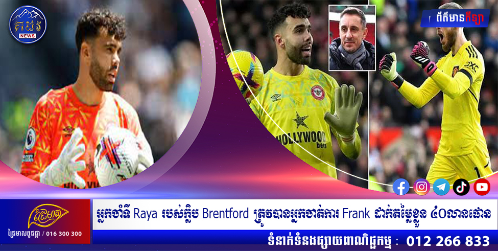 (ឡុងដ៍)៖ អ្នកចាត់ការក្លិប Brentford លោក Thomas Frank បានដាក់តម្លៃខ្លួនកីឡាករចាំទី David Raya ក្នុងតម្លៃ ៤០លានផោន សម្រាប់លក់ចេញ។