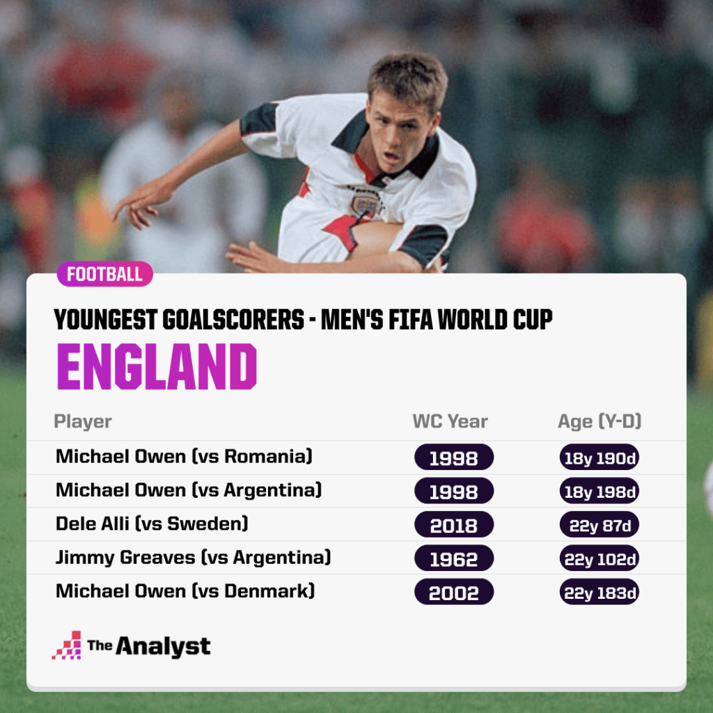 ៣៖ Michael Owen (អង់គ្លេស) មានវ័យ ១៨ឆ្នាំនិង ១៩១ថ្ងៃ (World Cup 1998)