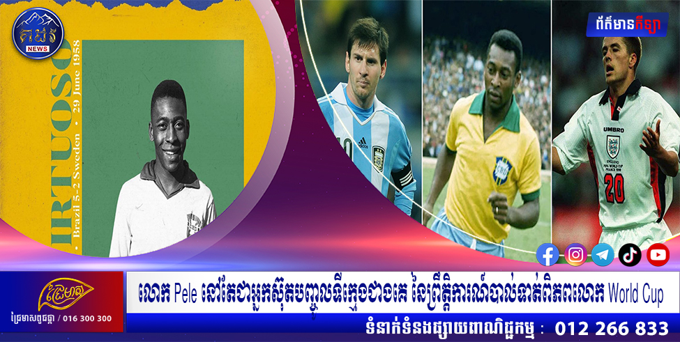 (ពិភពលោក)៖ ព្រឹត្តិការណ៍បាល់ទាត់ដណ្តើមពាន FIFA World Cup 2022 ដ៏រំជើបរំជួល នឹងចាប់ផ្តើមការប្រកួតជាផ្លូវការនៅក្នុងរយៈពេលតែ ៣ថ្ងៃទៀត ខណៈក្នុងប្រវត្តិសាស្ត្រនៃកំណត់ត្រាកីឡាករស៊ុតបញ្ចូលទីក្មេងជាងគេនោះ គឺអតីតវីរបុរសជម្រើសជាតិប្រេស៊ីល Pele ដែលលោកបានស៊ុតគ្រាប់បញ្ចូលទីក្នុងវ័យ ១៧ឆ្នាំនិង ២៣៩ថ្ងៃ។