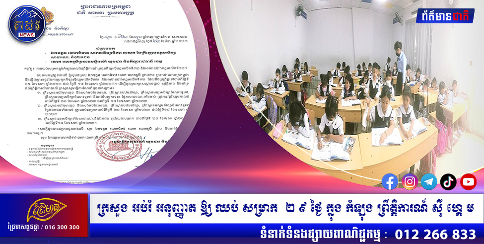 ក្រសួងអប់រំអនុញ្ញាតឱ្យឈប់សម្រាក២៩ ថ្ងៃ ក្នុងកំឡុងព្រឹត្តិការណ៍ស៊ីហ្គេម
