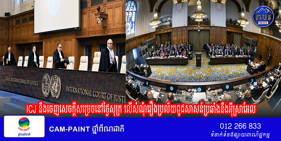 ICJ នឹងចេញសេចក្តីសម្រេចនៅថ្ងៃសុក្រ លើសំណុំរឿងប្រល័យពូជសាសន៍ប្រឆាំងនឹងអ៊ីស្រាអែល
