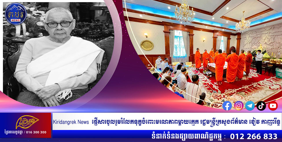 (ភ្នំពេញ)៖ ក្នុងនាមអង្គភាពព័ត៌មាន kiridangrek ផ្ញើសារចូលរួមរំលែកទុក្ខចំពោះមរណភាព មហាឧបាសិកា កុសលចិត្តាពុទ្ធសាសនូបត្ថម្ភក៍ ពេន យុត ម្ដាយក្មេកឯកឧត្តម ខៀវ កាញារីទ្ធ រដ្ឋមន្ដ្រីក្រសួងព័ត៌មាន និងត្រូវជាម្ដាយបង្កើត លោកស្រី ទេព រង្ស៉ី។