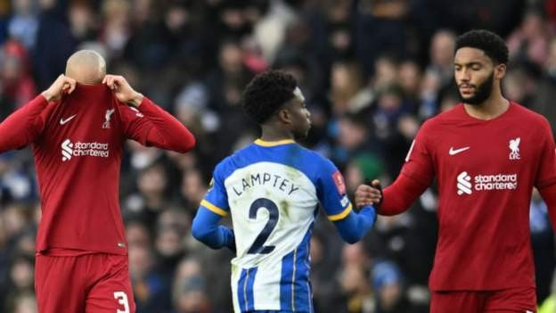 ក្នុងនាមជាក្រុមការពារតំណែងជើងឯក FA Cup ហង្សក្រហមបានរបូតគ្រាប់ចុងម៉ោងនៅនាទី៩២ ហើយនេះក៏ជាការបរាជ័យលើកទី២ ផងដែរនៅក្នុងផ្ទះរបស់ Brighton ត្រឹមតែប៉ុន្មានសប្តាហ៍ នៅពេលដែល Brighton ក៏ស្ថិតនៅចំណាត់ថ្នាក់លេខ៦ ពីលើ Liverpool ផងដែរក្នុងពាន Premier League។