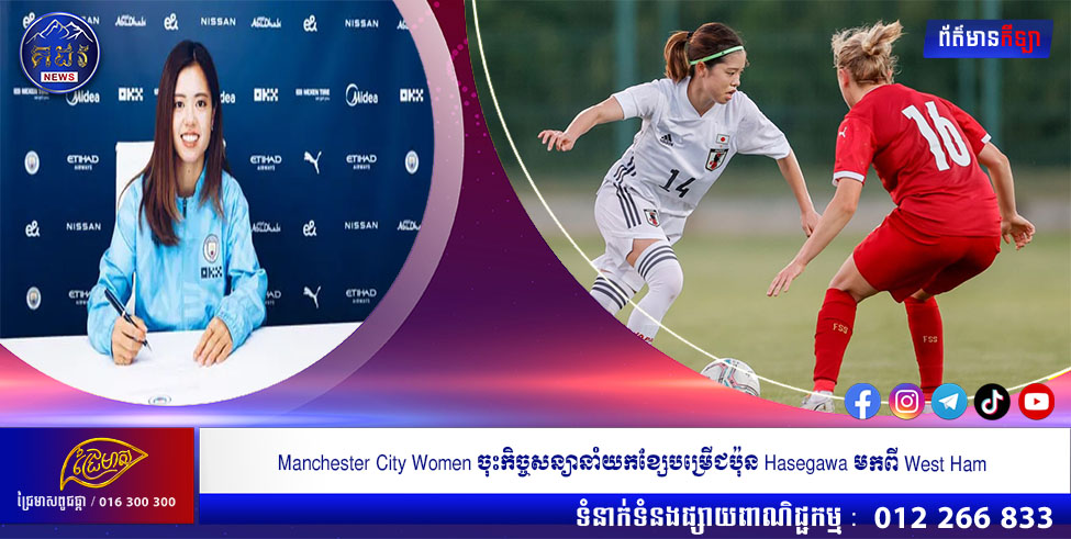 (មេនឆេស្ទឺ)៖ កីឡាការិនីអន្តរជាតិជប៉ុន Yui Hasegawa បានចូលរួមជាមួយក្លិប Manchester City ផ្លាស់មកពីក្លិប West Ham United លើកិច្ចសន្យារយៈពេល៣ឆ្នាំ, នេះបើតាមការអះអាងពីក្លិប នាថ្ងៃព្រហស្បតិ៍, មុនការចាប់ផ្តើមរដូវកាលថ្មីលីគ Women’s Super League នៅអង់គ្លេស, នេះបើយោងតាមសារព័ត៌មាន CNA ចេញផ្សាយនាយប់ថ្ងៃទី៩ ខែកញ្ញា ឆ្នាំ២០២២នេះ។