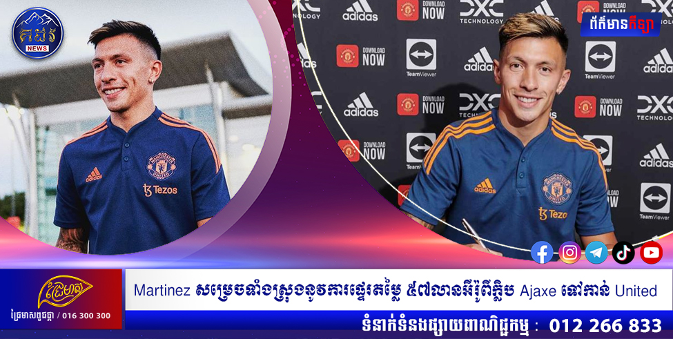 (មេនឆេស្ទឺ)៖ កីឡាករ Lisandro Martinez បានសម្រេចទាំងស្រុងនូវការផ្ទេររបស់លោកពីក្លិបហូឡង់ Ajax Amsterdam ទៅកាន់ក្លិប Manchester United ជាមួយនឹងខ្សែការពារសញ្ជាតិអាហ្សង់ទីនរូបនេះ បានចុះហត្ថលេខាលើកិច្ចសន្យារយៈពេល ៥ឆ្នាំ។ នេះបើតាមការអះអាងពីក្លិបដែលលេងនៅលីគ Premier League ហើយត្រូវបានចុះផ្សាយដោយសារព័ត៌មាន CNA នាថ្ងៃទី២៨ ខែកក្កដា ឆ្នាំ២០២២ នេះ។