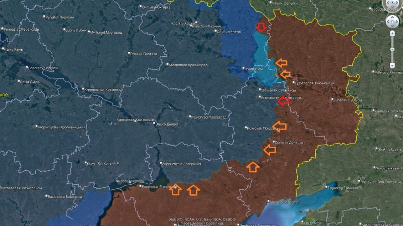 យោធាអ៊ុយក្រែនបាននិយាយនៅព្រឹកថ្ងៃអង្គារនេះថា កងកម្លាំងអ៊ុយក្រែនបានវាយលុកការវាយប្រហាររបស់រុស្ស៊ីនៅក្នុងការតាំងទីលំនៅមួយនៃតំបន់ Kharkiv ប្រហែលប្រាំកន្លែងនៅក្នុងតំបន់ Luhansk និងប្រាំមួយនៅក្នុងតំបន់ Donetsk រួមទាំងនៅ Bakhmut ក្នុងរយៈពេល 24 ម៉ោងកន្លងមក។ មេបញ្ជាការរងកងវរសេនាតូចបាននិយាយកាលពីថ្ងៃចន្ទថា ទីតាំងនៅ Bakhmut ត្រូវបានពង្រឹង ហើយមានតែមនុស្សដែលមានតួនាទីយោធាប៉ុណ្ណោះដែលត្រូវបានអនុញ្ញាតឱ្យចូល ខណៈជនស៊ីវិលណាដែលចង់ចាកចេញ ត្រូវតែក្លាហានក្នុងការបាញ់ចូល។