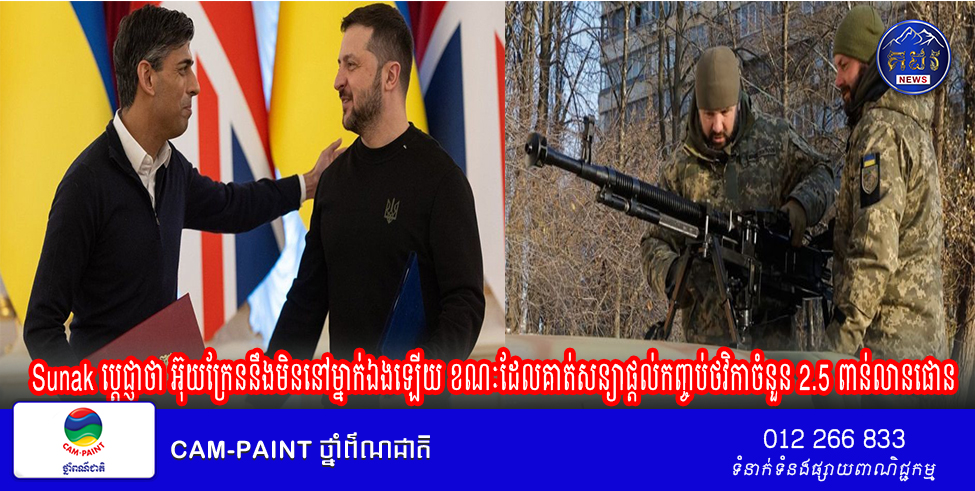 Sunak ប្តេជ្ញាថា អ៊ុយក្រែននឹងមិននៅម្នាក់ឯងឡើយ ខណៈដែលគាត់សន្យាផ្តល់កញ្ចប់ថវិកាចំនួន 2.5 ពាន់លានផោន