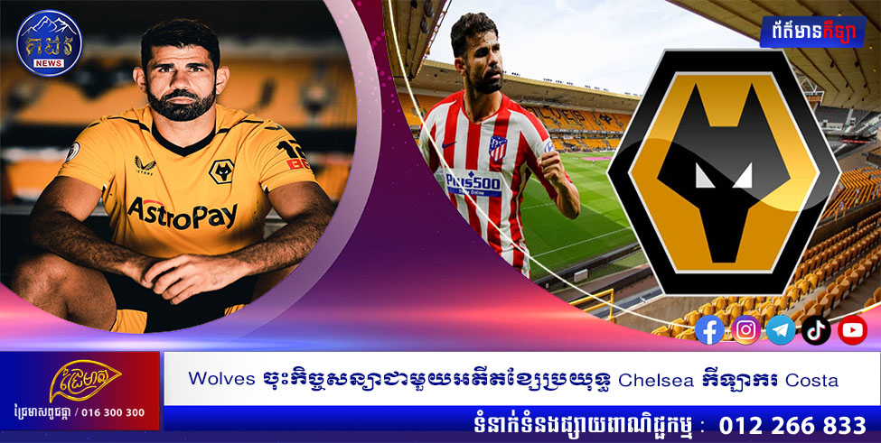 (វ៉ូលវើហេមតុន)៖ ក្លិប Wolverhampton Wanderers បានចុះកិច្ចសន្យាជាមួយកីឡាករ Diego Costa លើការផ្ទេរដោយឥតបង់ថ្លៃ។ នេះបើតាមការបញ្ជាក់ពីក្លិបដែលលេងនៅលីគ Premier League នាថ្ងៃចន្ទ ជាមួយនឹងអតីតខ្សែប្រយុទ្ធក្លិប Chelsea និង Atletico Madrid បានចូលរួមជាមួយ ចំពេលដែលក្លិបកំពុងមានវិបត្តិដោយសារកីឡាកររបួសផងដែរ។ នេះបើយោងតាមសារព័ត៌មាន CNA ចេញផ្សាយនាថ្ងៃទី១៣ ខែកញ្ញា ឆ្នាំ២០២២។